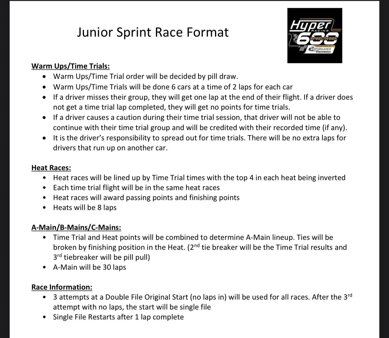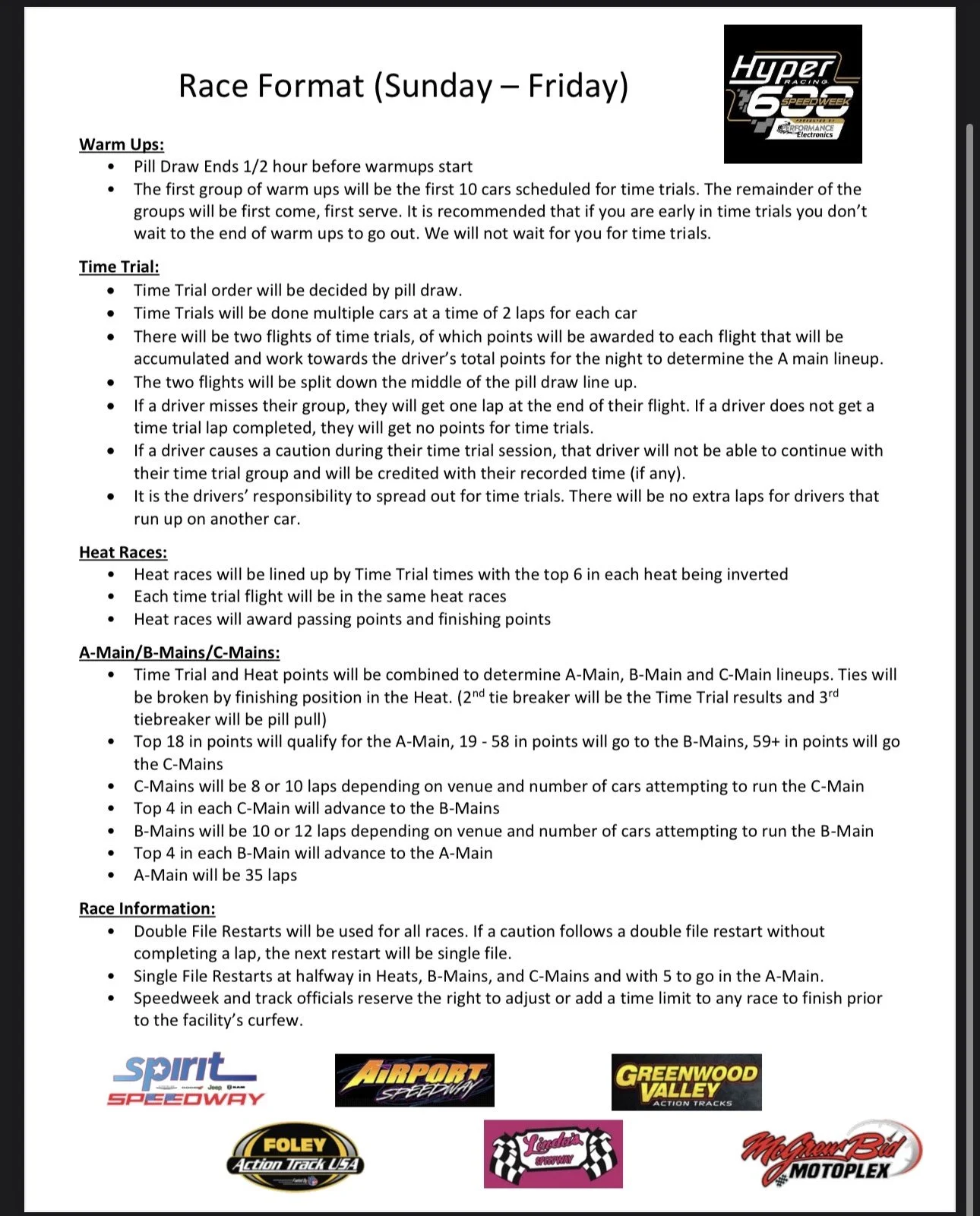 600 Speedweek reserves the right to modify the format at ANY time during the night in order to complete the night of racing with the interest of getting a complete night in.